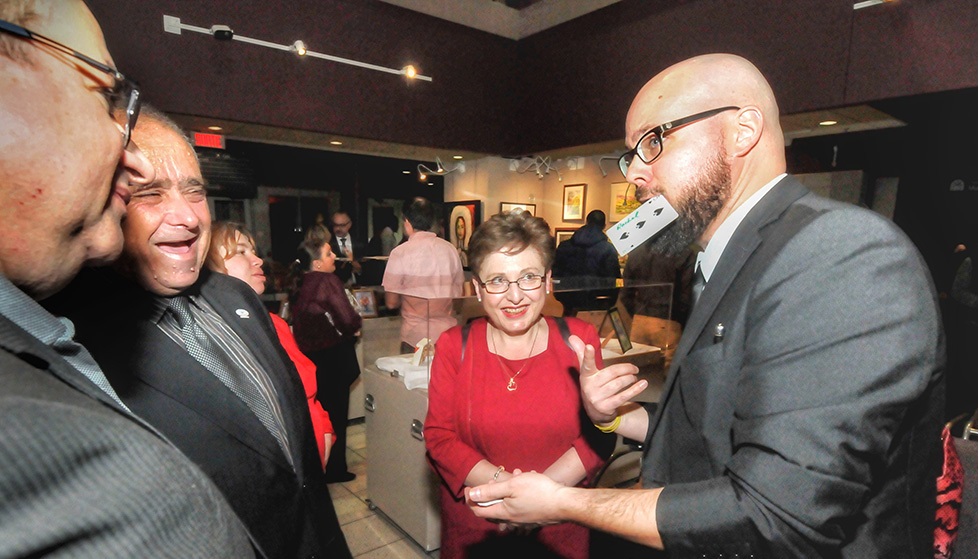 Sébastien éblouira vos invités avec des cartes à jouer, des pièces de monnaie, ou encore de simples élastiques et garantira que vos invités se rappelleront longtemps de votre événement! La magie en cocktail et aux tables est toujours grandement appréciée et est une valeur sûre pour faire en sorte que vos invités vivent une expérience hors du commun! Un des nombreux avantages de la micromagie (dite close-up ou magie de proximité) est que le magicien n’a aucun besoin technique et s’adapte à toutes les contraintes de temps ou d’espace! Vous désirez personnaliser un peu l’expérience? Sébastien inclura le logo de votre compagnie ou d’un commanditaire dans ses présentations!